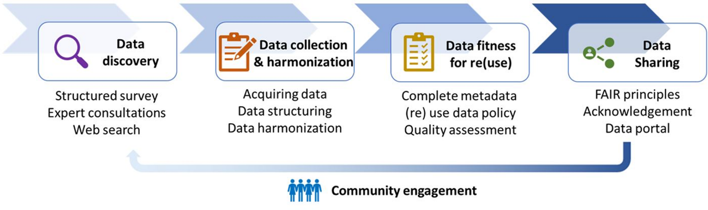 The WorldCereal Reference Data Module (RDM; [5]) addresses one of the biggest bottlenecks in crop mapping: the lack of accessible, harmonised reference data. Many crop type data collection campaigns have been initiated in the past, but typically remain disconnected, each characterized by its own data formats, nomenclature, license and access point. WorldCereal has set up a community driven framework for reference data collection and re-use, covering data discovery, collection, harmonization, documentation, quality assessment and publication (Figure 32.2, [6]).