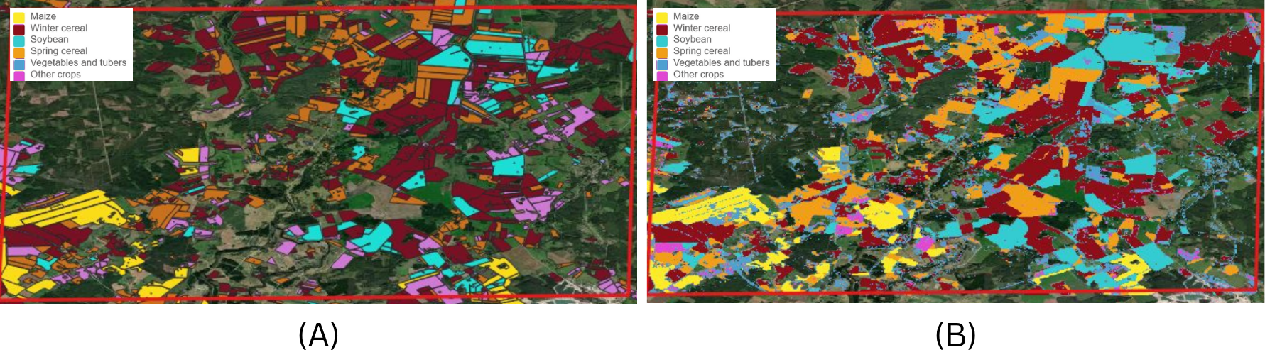 Two obstacles have limited broader uptake. First, reference data – the ground truth needed to train and validate models – are scarce, heterogeneous and often closed-source. Second, models are difficult to transfer in space and time: a classifier trained on maize in Argentina may perform poorly in Ethiopia, or even in Argentina in a different year. For NSOs, this means EO-based crop mapping approaches and derived maps often lack the consistency and reliability needed for official statistics.