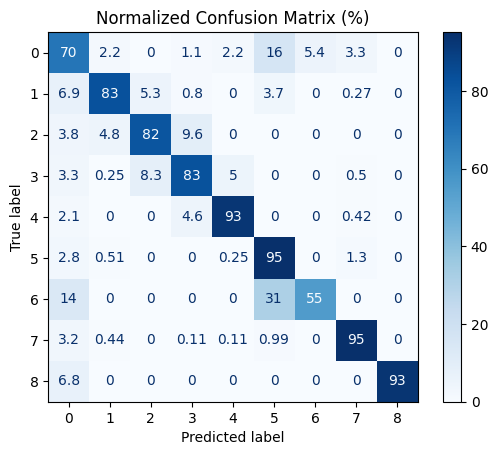 The model achieved strong overall performance on the validation set, with an accuracy of 82.4% and a matching micro F1-score of 82.4%, indicating high correctness across all classes. The macro F1-score of 74.9% further demonstrates balanced performance between majority and minority classes, suggesting that class imbalance was effectively addressed. The high AUC of 0.9695 reflects excellent ability to distinguish between classes, while the PR-AUC of 0.8048 indicates strong precision-recall trade-offs.