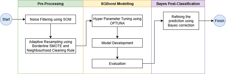 In this study, we presented a complete workflow for analyzing paddy phenological phases using satellite imagery and machine learning. The process is structured into three main stages: preprocessing, modeling, and refinement. The preprocessing phase includes noise filtering using Self-Organizing Maps (SOM) and adaptive resampling. The modeling phase involves hyperparameter tuning, model development, and performance evaluation. Finally, the refinement phase applies Bayesian post-processing to improve classification accuracy.