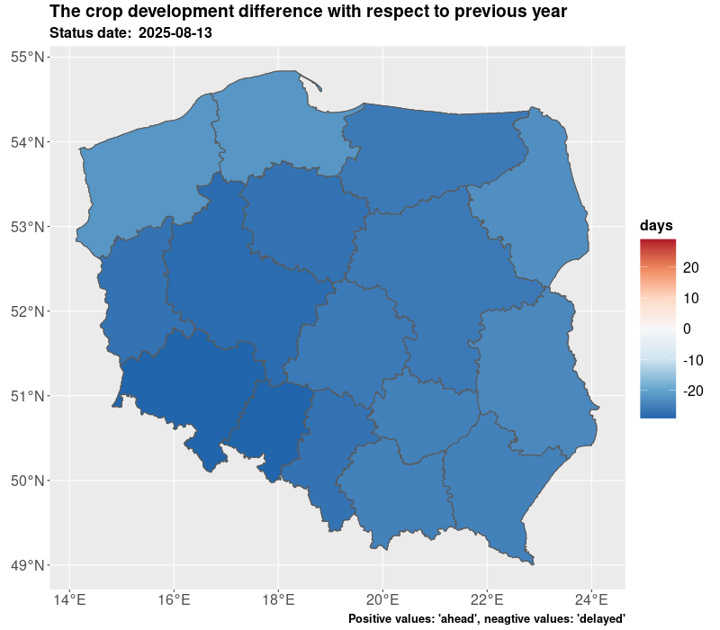 The crop yielding masks are also available in table form as presented in Table 1 and Table 2. For the need of current publication only regional results were presented due to the publication limitation. However, most of data is available for the municipality (NUTS 5) level. More information and data for 2025 are published on the geostatistical portal. For needs of further analyses the estimates from the current year can be compared with the past years e.g. 5 years averages. Additionally, several indicators can be added such as growing degree days, NDVI, average temperatures, precipitation. Nevertheless, result from models are subject to careful verification by field experts.