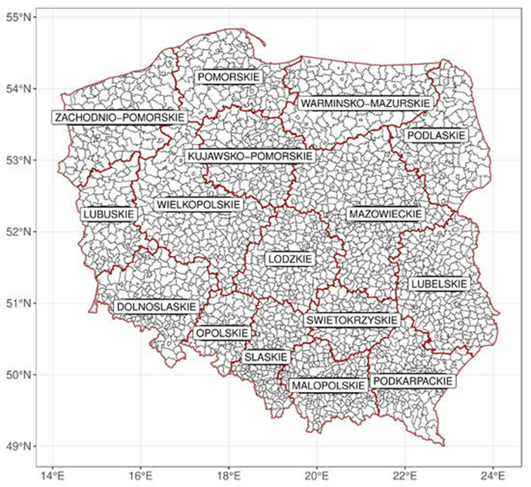 | Kujawsko-Pomorskie | 69,6 | 754,4 | 43,9 | 40,8 | 54,5 | 32,6 | 224,5 | 56,3 |