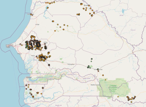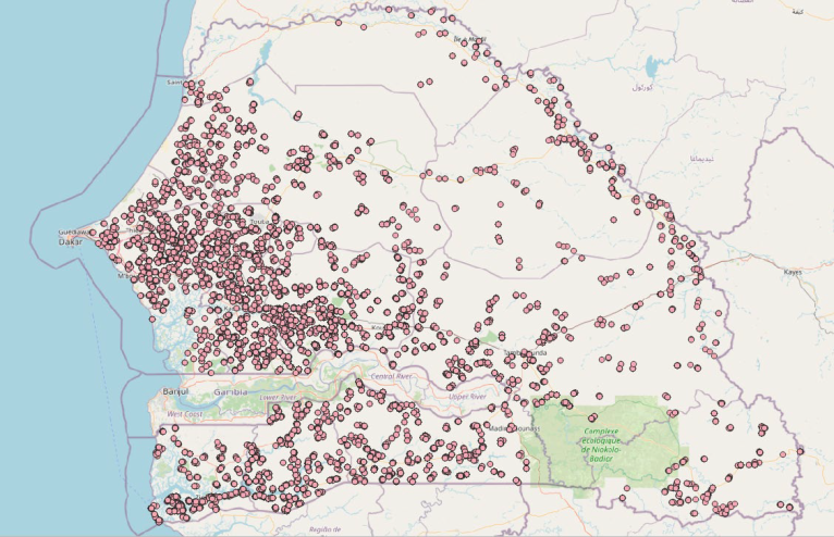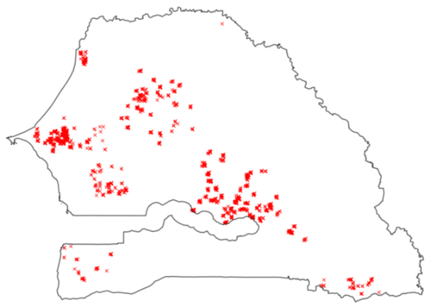 Parcels’ area is also measured with GPS and this measured area is then reported manually in the survey questionnaire available on the tablet. Unfortunately, the GPS traces are not systematically archived – only a subset of them are kept for quality control by the supervision team at DAPSA. A subset of these traces, mainly located between Touba and Thiès, was also shared by DAPSA (Figure 10.2).