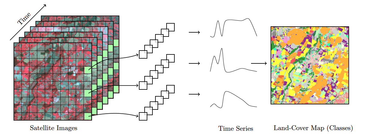 Satellite imagery provides the most extensive data on our environment. By encompassing vast areas of the Earth’s surface, satellite images enable researchers to analyze local and worldwide transformations. By observing the same location multiple times, satellites provide data on environmental changes and survey areas that are difficult to observe from the ground. Given its unique features, images offer essential information for many applications, including deforestation, crop production, food security, urban footprints, water scarcity, and land degradation. Using time series, experts improve their understanding of ecological patterns and processes. Instead of selecting individual images from specific dates and comparing them, researchers track change continuously [1]. Combined with Earth observation data cubes, time series are a powerful tool for monitoring change, providing insights and information that single snapshots cannot achieve. Time series analysis are a new and exciting paradigm.