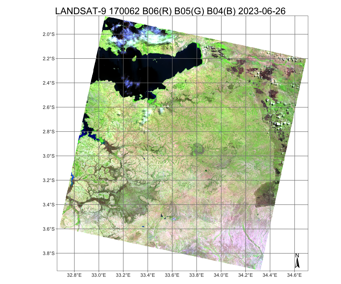 The next example retrieves a set of ARD Landsat-9 data, covering the Serengeti plain in Tanzania.