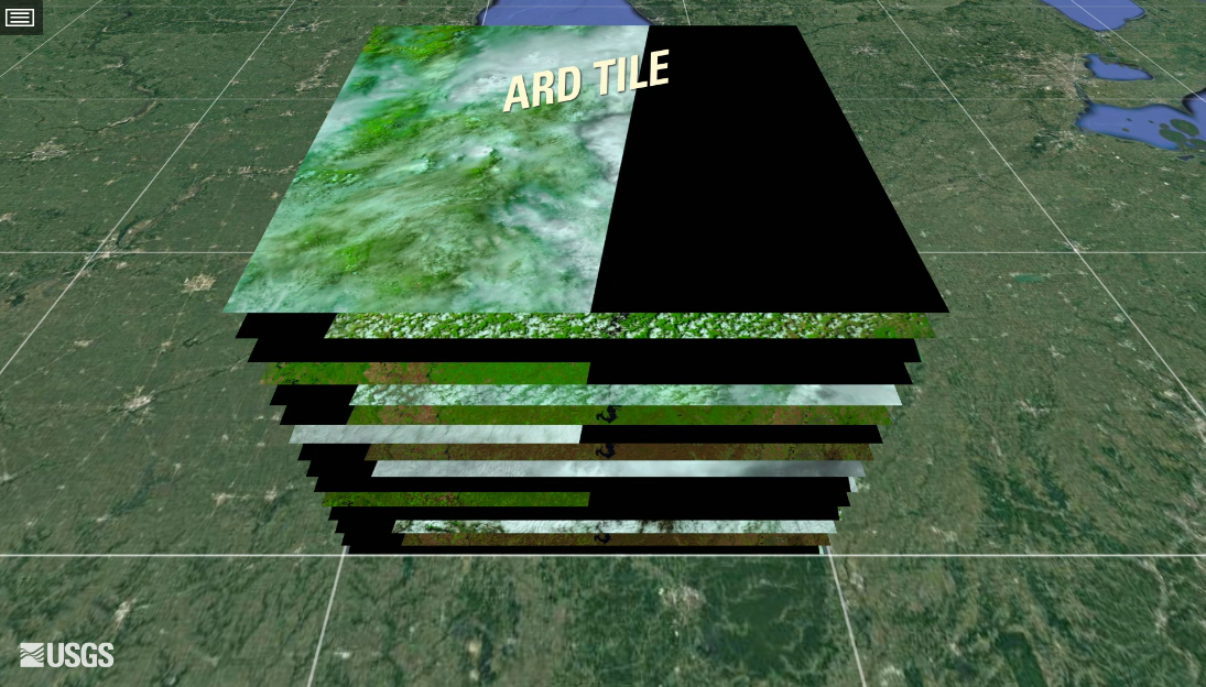 ARD images are available from various satellite platforms, including Landsat, Sentinel, and commercial satellites. This provides a wide range of spatial, spectral, and temporal resolutions to suit different applications. They are organised as a collection of files, where each pixel contains a single value for each spectral band for a given date. These collections are available in cloud services such as Brazil Data Cube, Digital Earth Africa, and Microsoft’s Planetary Computer. In general, the timelines of the images of an ARD collection are different. Images still contain cloudy or missing pixels; bands for the images in the collection may have different resolutions. Figure 2.1 shows an example of the Landsat ARD image collection.