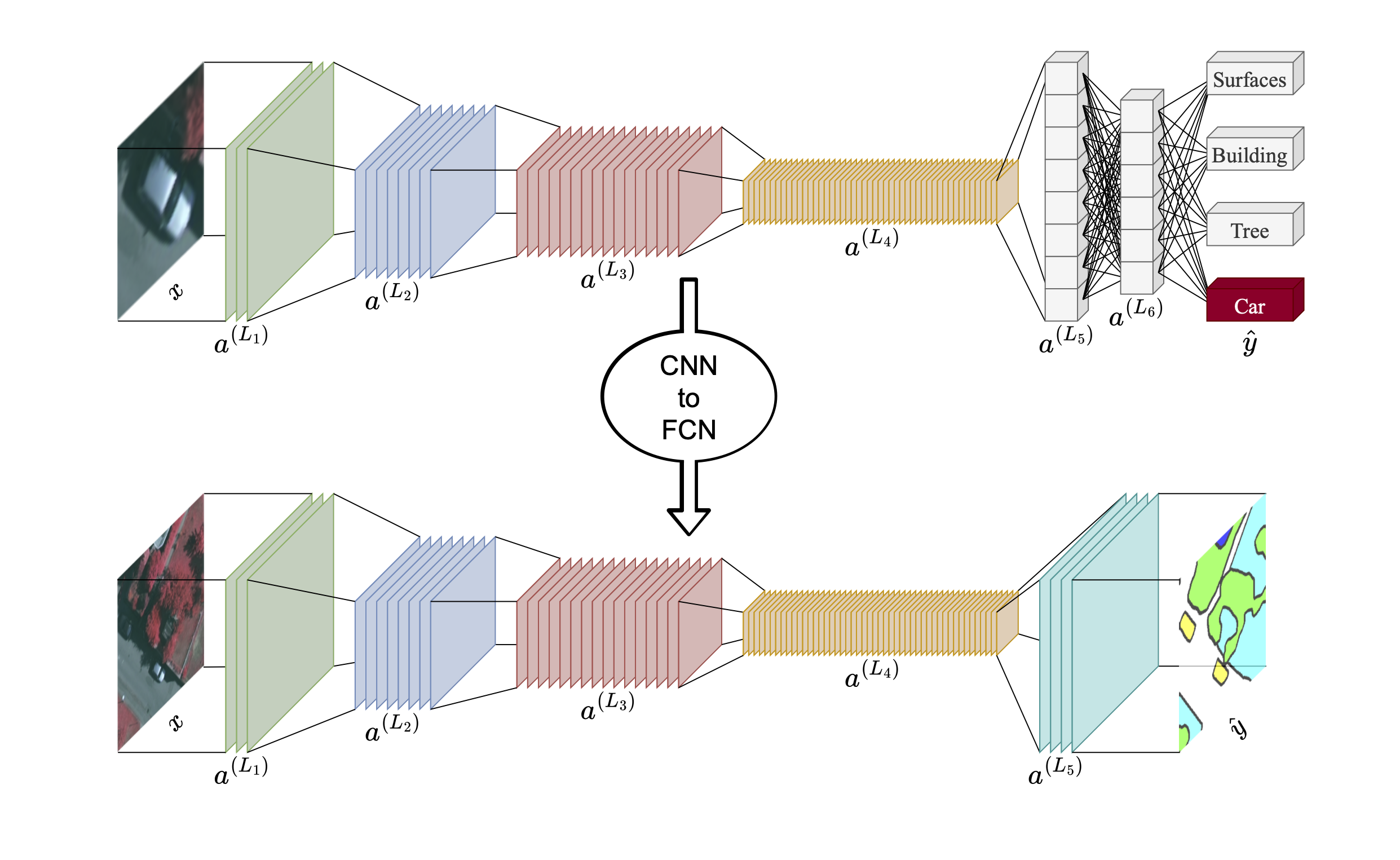 - Fully Convolutional Networks (FCNs): These networks replace fully connected layers of traditional CNNs with convolutional layers, enabling end-to-end training and outputting dense pixel-level predictions directly [18]. A key advantage of FCNs is their inherent ability to use pretrained CNNs (often from image classification tasks) as a base. FCNs enable knowledge transfer from sparse labeling tasks (e.g., object/scene classification) to dense labeling tasks (e.g., semantic segmentation) [18]. FCNs utilize skip connections to merge high-level semantic information (from deeper layers) with high-resolution spatial details (from shallower layers), leading to more accurate and finely-detailed segmentation boundaries. This architecture ensures that both context and precise localization are considered.