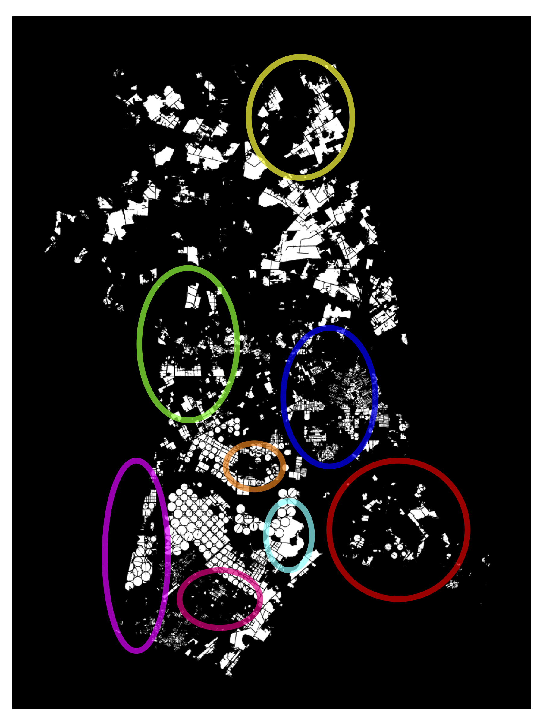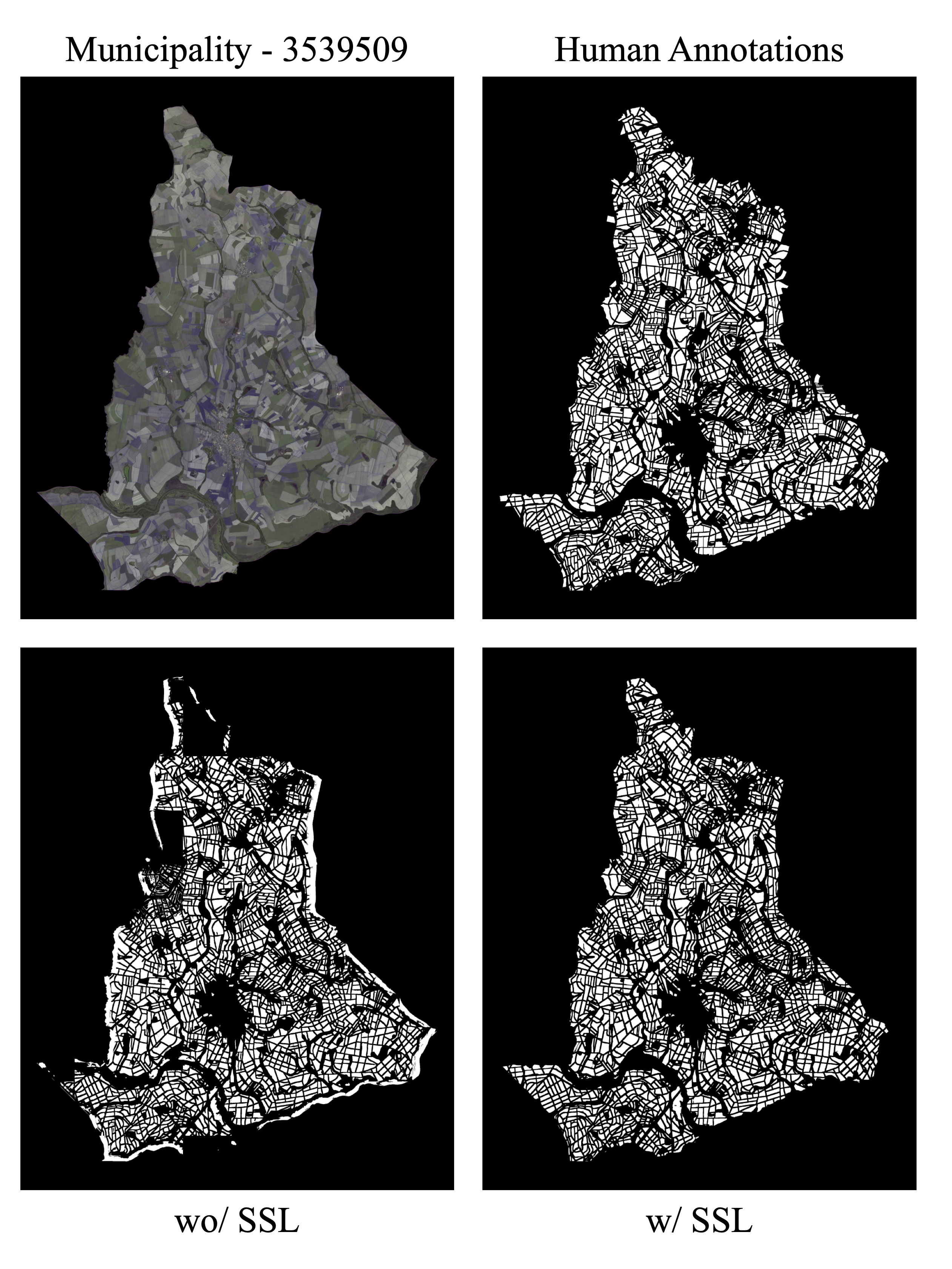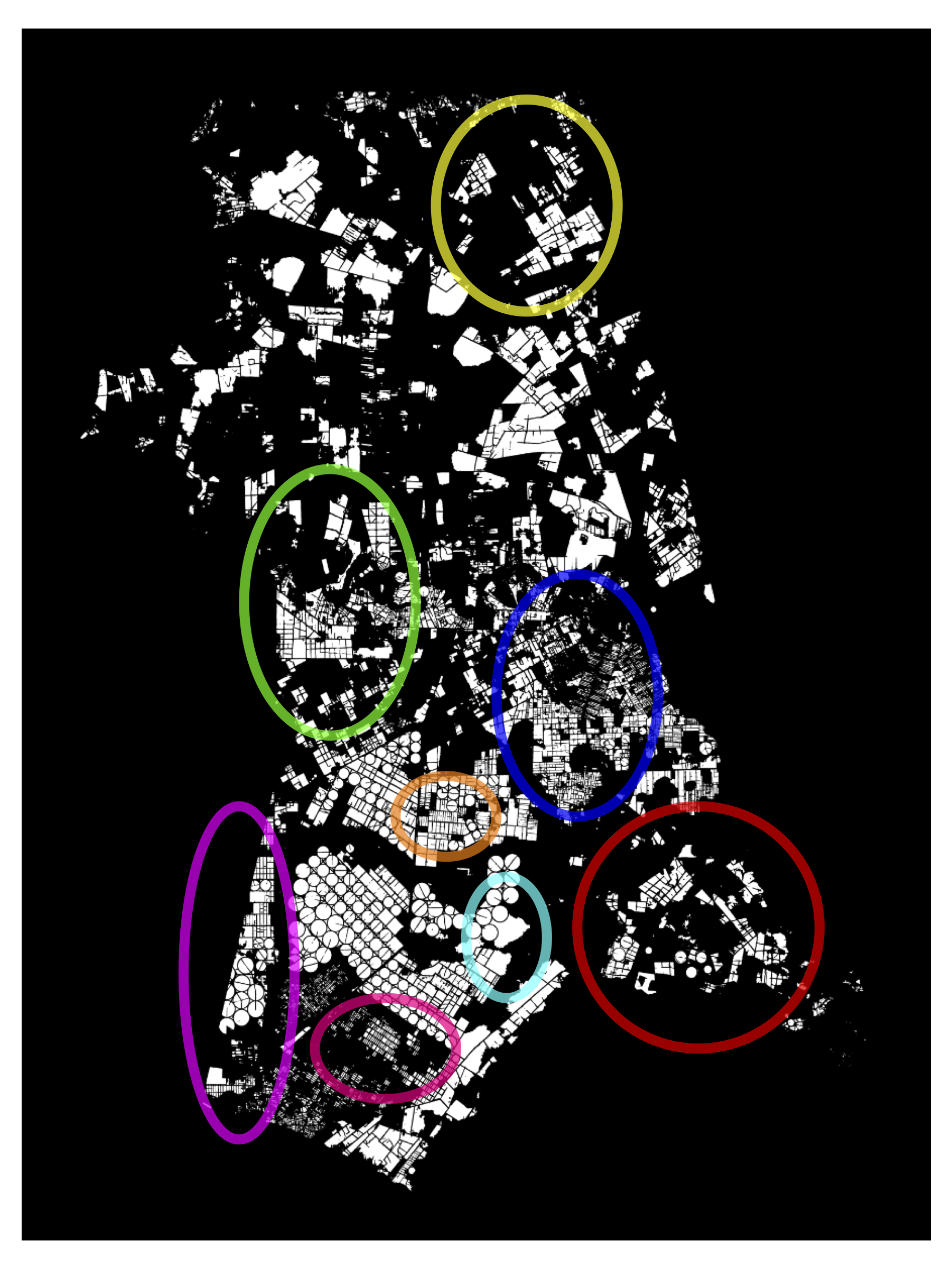 - Highlighting Annotation Areas: For efficient and collaborative manual annotation as shown in Figure 11.9, large municipalities are systematically divided into smaller, manageable sub-regions (e.g., each with a maximum area of 1000 km\(^2\)). This modular division facilitates the distribution of annotation tasks and ensures that no single annotator is overwhelmed by excessively large areas. This approach is beneficial in vast regions of significant economic impact, where precise annotation is critical.