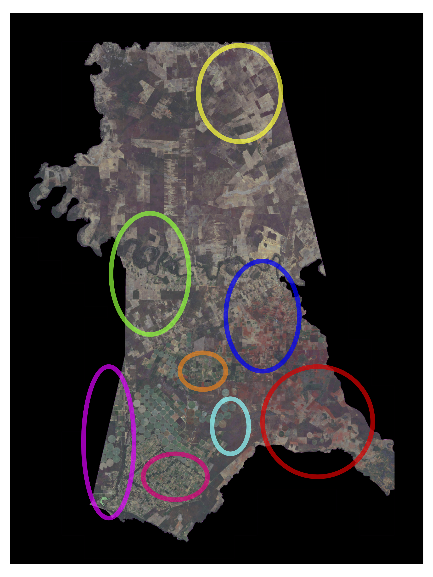 Additionally, large-scale annual mosaics covering entire states, encompassing hundreds of municipalities and hundreds of gigabytes of image data, can be acquired (e.g., for Goiás state, totaling 246 municipalities and 210GB of data). Given the wide variety of applications related to agricultural statistics, other datasets may be incorporated as algorithms evolve and adaptation needs arise.