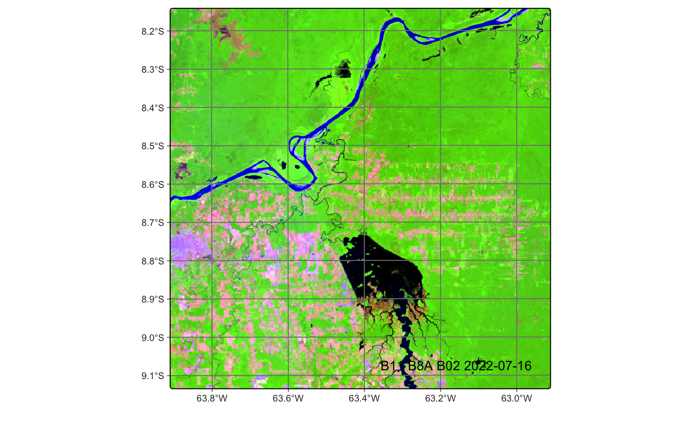 | B11 | SWIR 1 | 1610 | 90 | 20 | Vegetation moisture, burned area mapping |