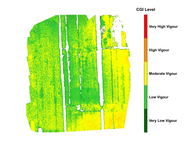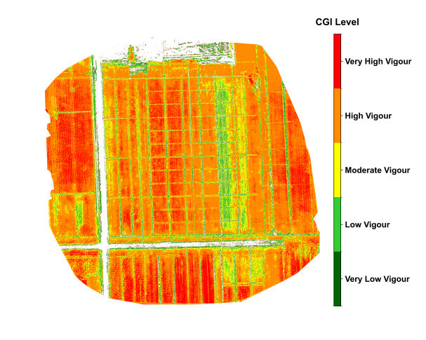 Crop growth monitoring is a fundamental component of modern precision agriculture and plays a crucial role in ensuring food security and optimizing agricultural production. Unmanned aerial vehicle (UAV) imaging has become a key technology for efficient and non-destructive monitoring of crop growth [1]. This section introduces a method for automatically monitoring crop growth using UAV-based multispectral imagery, named Crop Growth Index (CGI). The CGI integrates multispectral vegetation indices through normalization and principal component analysis (PCA), enabling effective fusion of multi-band information to improve the accuracy and stability of growth monitoring [2]. The method emphasizes automated data processing and intuitive visual expression of results, supporting rapid generation of continuous CGI values and growth grade maps, which are valuable for field-level decision-making.