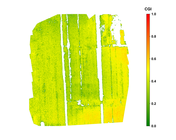 From an application perspective, the automated implementation of CGI offers two key advantages. First, the entire workflow is built upon open-source tools (e.g., NumPy, Rasterio, scikit-learn) and can be efficiently executed on standard research workstations without expensive hardware. Second, the outputs include three types of products, continuous-value GeoTIFFs, color-rendered maps, and classified maps, that can be directly integrated into GIS systems alongside other agricultural factors (e.g., fertilization zones, soil properties, meteorological data) for visualization and field decision-making.