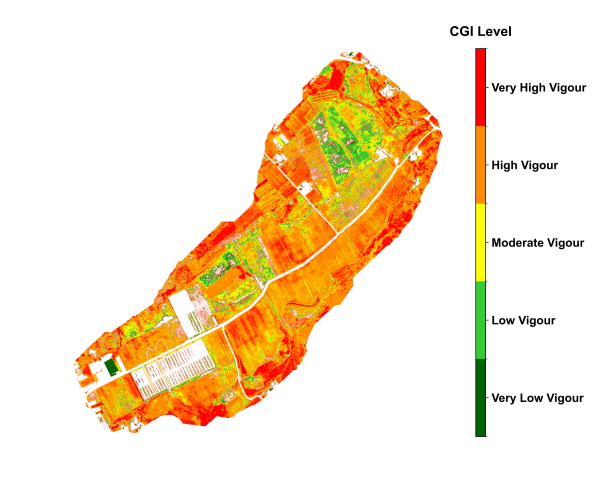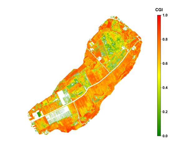 The above results demonstrate that the CGI algorithm, based on the fusion of multispectral vegetation indices, effectively captures spatial variability of crop growth across different crop types and growth stages. The outcomes show strong agreement with field observations, indicating high applicability and potential for broader adoption.